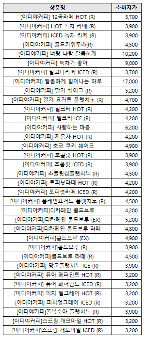 뒤로 공지사항 공지[판매중단] 이디야커피 일부상품 판매중단 안내의 건 안녕하세요, GS&쿠폰입니다. 이디야커피 일부 상품 판매 중단 안내 드립니다. * 브랜드 : 이디야커피* 중단일자 : 2025.12.15 23:59 ~* 중단사유 : 브랜드사 사정에 의한 중단* 판매재개일시 : 12월 3주차 내* 비고 : 기발급 쿠폰은 정상 사용 가능* 중단상품 감사합니다. ※ 첨부파일이 없습니다. 이전글 목록 다음글 전체메뉴 초특가 홈 견적서 마이페이지 로그인이 필요합니다 로그인 회원가입 전체 카테고리GS&쿠폰이 준비한 다양한 상품을 만나보세요. 초특가 커피/음료 상품권 배달/페이 편의점/마트 치킨/피자/버거 빵/아이스크림 주유/결합쿠폰 문화/생활 외식/푸드 공지사항 이벤트 1:1 문의 대량발송/계약문의 GS&쿠폰 처음이세요? 이용가이드 다운로드 상품목록 다운로드 GS&쿠폰 소개서 사이트맵 어떤 상품을 찾고 계신가요? 정보보호 및 개인정보 관리체계 인증 인증범위 온라인 서비스 운영(모바일 쿠폰) 유효기간 2025-10-01 ~ 2028-09-30